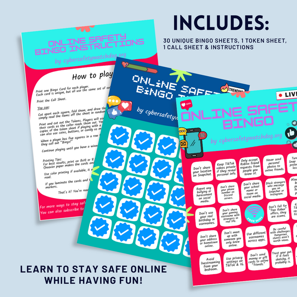 Digital Safety Bingo for Teens | Printable Online Safety Game for Schools, Youth Groups & Parents Online Awareness, Cybersecurity Education